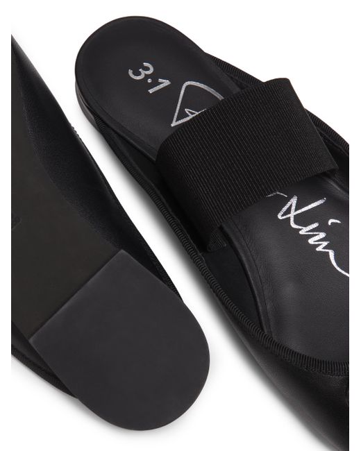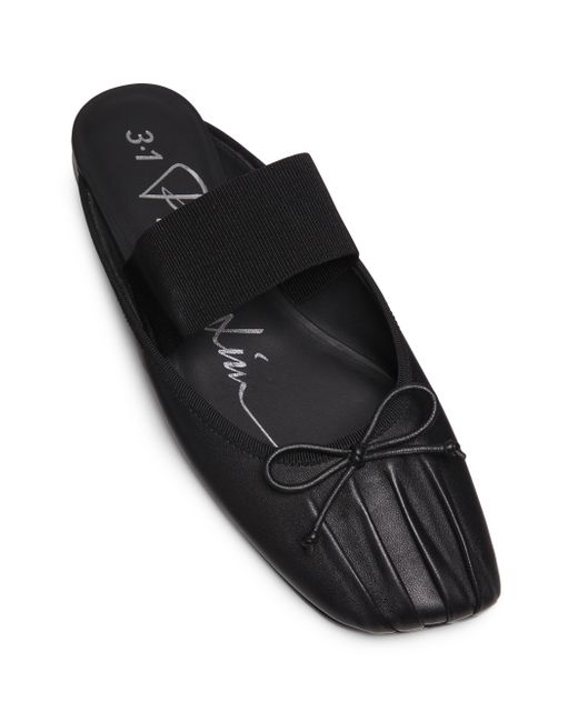 Designed with a ballerina-inspired silhouette, 3.1 Phillip Lim's ID mules are crafted of smooth leather and styled with a bow detail. Square toe Slips on Leather upper Leather lining Rubber sole Dust bag Imported. Women's Shoes - Workshop Shoes > 3.1 Phillip Lim > Saks Fifth Avenue > Barneys. 3.1 Phillip Lim. Color: Black. Size: 5.