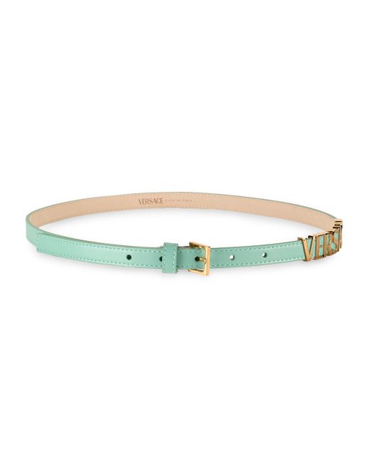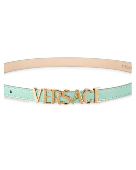 Crafted of leather, this skinny belt is detailed with goldtone Versace logo hardware. Pin-buckle closure Goldtone hardware Leather Made in Italy SIZE Width: about 0.5" (15mm) ABOUT THE BRAND Founded in 1978, Versace is instantly recognizable by the signature Medusa head logo, chosen by founder Gianni Versace for its Greek symbolism. The Italian label is known for its luxe, bold clothing and accessories-think gilding, oversized logos and punchy prints. Since taking over artistic direction, Gianni's sister Donatella Versace has maintained the brand's strong identity, with a renewed vision to give customers the ultimate freedom to express themselves. Soft Accessories - Belts > Versace > Saks Fifth Avenue > Barneys. Versace. Color: Sea Green Gold. Size: Small.
