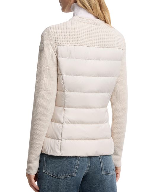 Made from plush wool, this cardigan is enriched with a down-filled back. Made from carded wool Lining in polyester Down-filled back in polyester Rib and waffle knit Gauge 7 Collar Zipper closure Belt Patch pockets with button closure Logo patch in leather Outer back: 100% polyester; base fabric: 100% virgin wool; back lining: 100% polyester; padding: 90% down, 10% feather;leather tag: calf Do not wash; Do not bleach; Do not tumble dry; Ironing maximum temperature 110C - without steam; Dry cleaning with hydrocarbons - mild process; Do not professionally wet clean; Flat dry in the shade; Wash separately; It is advisable to wash and iron with the garment on reverse Imported ABOUT THE BRAND Named after the beautiful Alpine town of Monestier-de-Clermont near Grenoble, France, the luxury outerwear brand debuted in 1952 with quilted sleeping bags and down jackets created to protect the town's workers from the elements. Today, Moncler's insulated, high-performance gear is supplemented with après ski styles for women, men and kids, as well as shoes and winter accessories. Lsd Mens - Moncler > Moncler > Saks Fifth Avenue > Barneys. Moncler. Color: White. Size: XS.