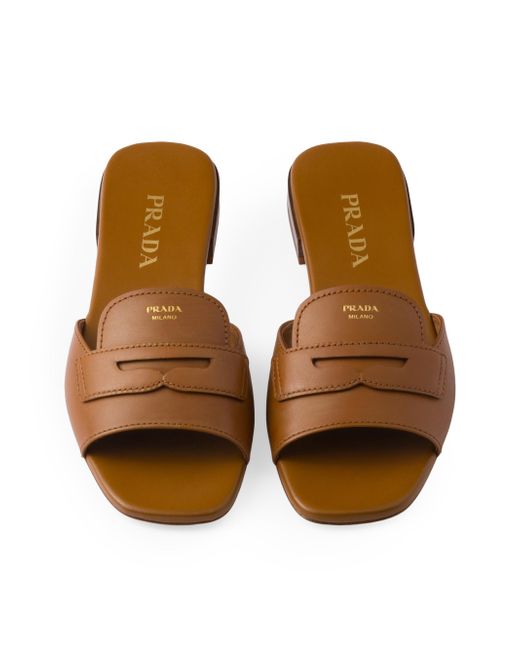 Screen-printed logo Leather sole with hot-stamped logo Leather-covered heel, 10mm / 0.4'' Imported 100% Calf Leather. Lsd Rtw - Prada Rtw > Prada > Saks Fifth Avenue > Barneys. Prada. Color: Brown. Size: 6.5.