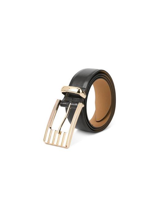 Ettika Women's Engraved Rectangle Buckle Black Leather Belt
