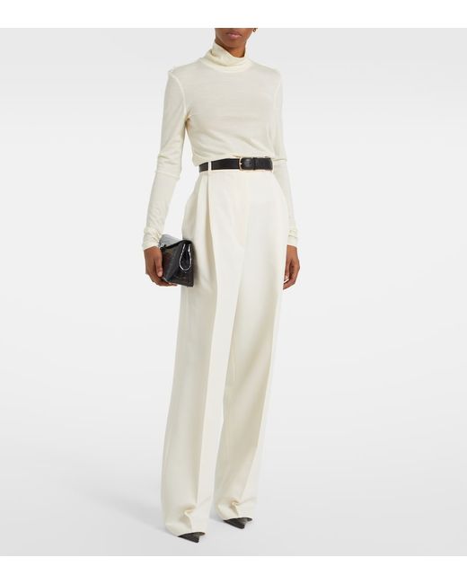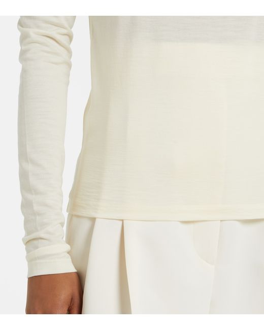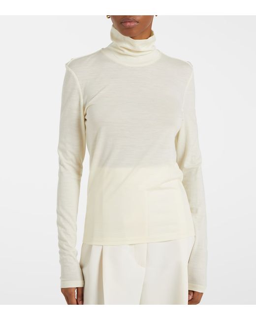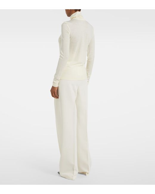 Material: 100% wool. Care instructions: hand wash. Made in China. Designer color name: Cream. Collar: turtleneck. Wool.