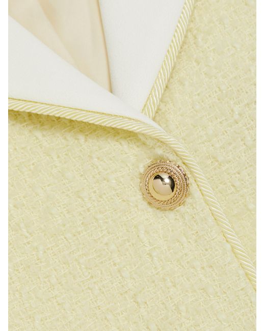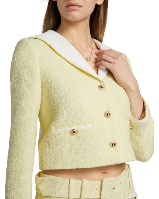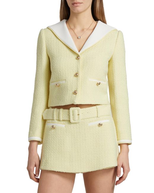 This bouclé jacket from Self-Portrait features a contrast sailor collar and goldtone buttons. Sailor collar Long sleeves Side button-through welt pockets Button-front closure 40% polyester/26% acrylic/24% wool/10% polyamide Lining: 100% cupro Trim: 100% polyester Dry clean Imported SIZE & FIT Relaxed fit Model measurements: 5'10" tall Model is wearing a US size 4 ABOUT THE BRAND Self-Portrait was founded in 2013 by Malaysian designer Han Chong, a Central Saint Martins graduate. The contemporary London-based label, often spotted on the red carpet, features easy evening pieces with signature details like eyelet lace, ruffles and sheer panels. Contemporary Sportswear - Contemporary Collections > Self-portrait > Saks Fifth Avenue > Barneys. Self-Portrait. Color: Yellow. Size: 0.