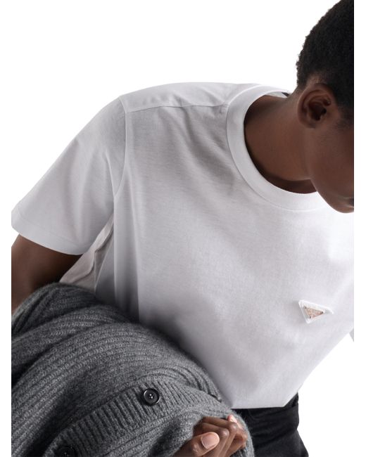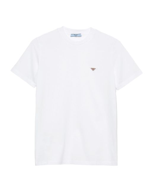 Distressed jersey Straight fit Ribbed knit crew neck Short sleeves Enameled metal triangle logo Imported 100% Cotton. Lsd Rtw - Prada Rtw > Prada > Saks Fifth Avenue > Barneys. Prada. Color: White. Size: XS.