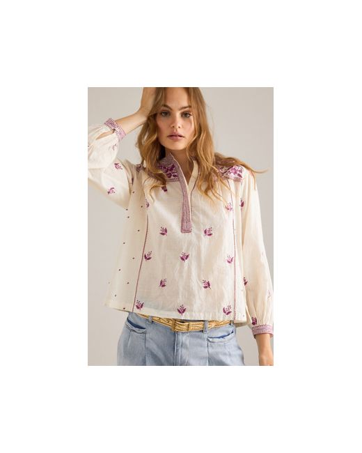 By Dilli Grey 100% Cotton Pullover styling Buttoned neckline Balloon sleeves Machine wash Imported Florence Embroidered Blouse by Dilli Grey in Beige, Women's Size: Small, Cotton at Anthropologie