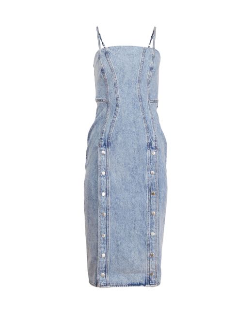 Crafted of denim, this chic midi-dress from Fleur du Mal features snap plackets at the skirt. Bandeau neck Spaghetti straps Snap plackets 100% cotton Hand wash Imported SIZE & FIT About 40" from shoulder to hem Model measurements: 5'10" tall Model is wearing a US size 4. Lingerie - Special Occasion > Fleur Du Mal > Saks Fifth Avenue > Barneys. Fleur du Mal. Color: Acid Blue. Size: 0.