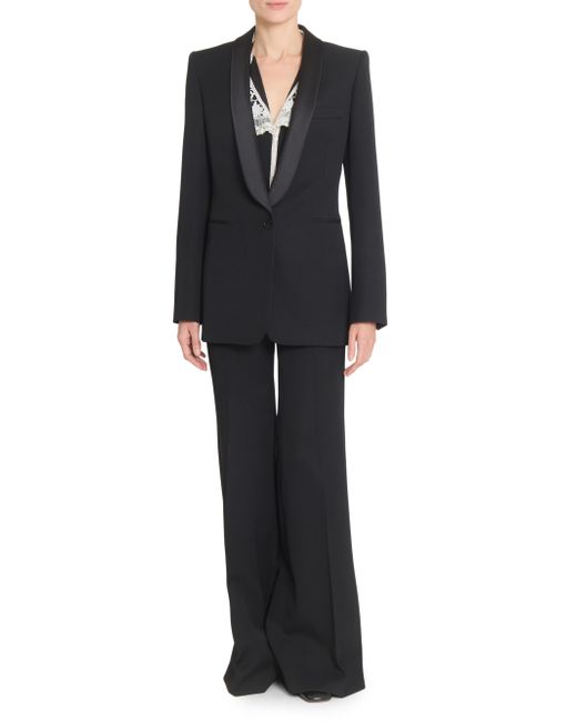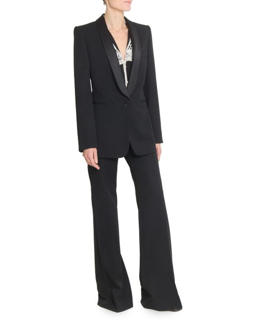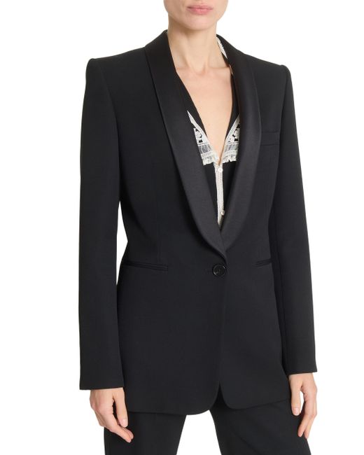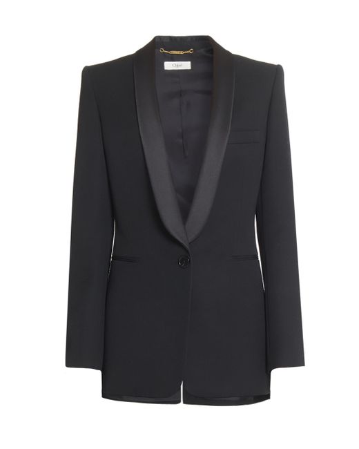 Crafted in Italy, Chloé's sophisticated tux-style jacket features satin shawl lapels and a one-button closure. Shawl lapels Long sleeves, button cuffs Chest welt pocket Front besom pockets Button-front closure 100% wool Lining: 100% silk Top collar: 100% polyester Trim: 100% asian water buffalo horn Dry clean Made in Italy SIZE & FIT Model measurements: 5'10" tall Model is wearing a US size 4 ABOUT THE BRAND In 1952, founder Gaby Aghion established Chloé as an alternative to couture, and to appeal to the aspirations and empowerment of women. The label is now led by Creative Director Chemena Kamali, who furthers its signature aesthetic of cool, French-girl style. Advanced Designer - Chloe Rtw > Chloé > Saks Fifth Avenue > Barneys. Chloé. Color: Black. Size: 2.