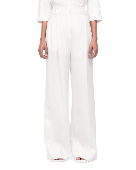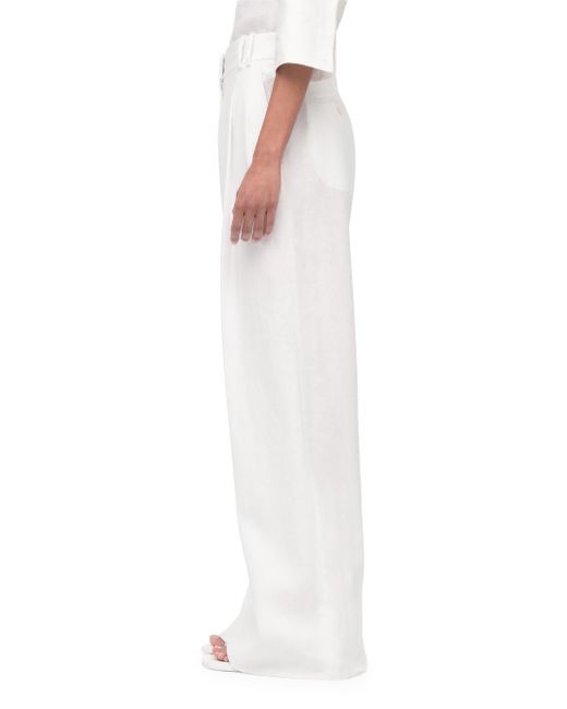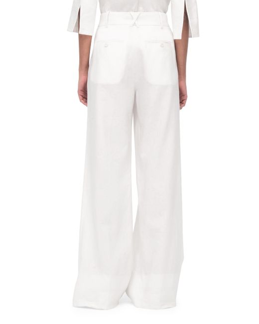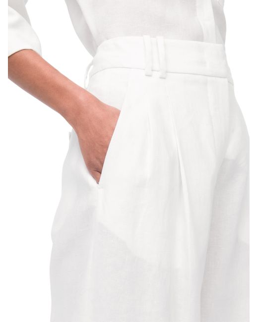 Crafted in breathable linen with a wide leg fit and pleats at the front, this is a quintessential elevated summer pants. Sitting at the natural waist, the trousers close at the front fly with a hook and bar button made of corozo, with additional welts in the back that fasten with self-covered buttons. The soft natural wrinkle is a hallmark of organic linen, and need not be steamed. Made from flax grown in Europe. Linen is a naturally low impact textile that doesn't require pesticides or heavy irrigation. We prioritize linen made from non-GMO flax grown in Europe, because of a centuries-long history of quality craftsmanship and sound environmental practices in that region. 100% Linen Made with responsibly sourced and traceable linen Made in Italy Sits at natural waist Pleats at front Front fly with zipper and hook and bar Corozo button closure Back welt pockets with self covered buttons Dry clean sparingly SIZE Runs true to size Model is 5'10'' and wears a size 40. Lsd Rtw - Womens Rtw Lsd Mp > Another Tomorrow > Saks Fifth Avenue > Barneys. Another Tomorrow. Color: White. Size: 4.