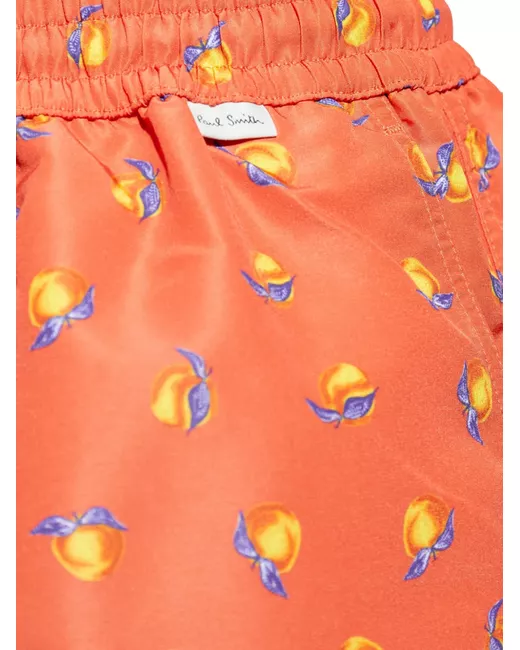coral orange peach print drawstring fastening side pockets elasticated waistband all-over pattern Be mindful to try on swimwear over your own garments.