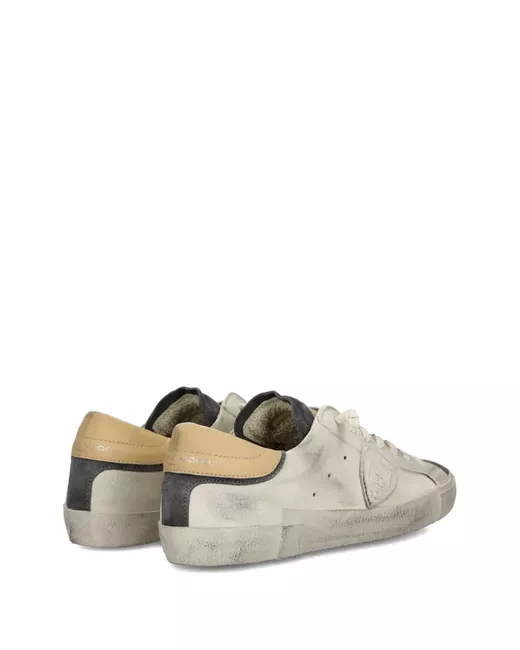 beige suede toe cap leather heel counter logo patch detail lace-up closure distressed finish
