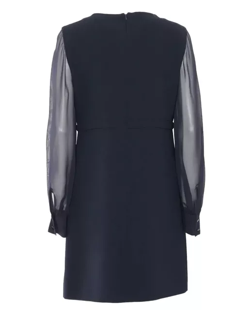 navy blue concealed rear zip fastening buttoned cuffs long sheer sleeves buttoned cuffs