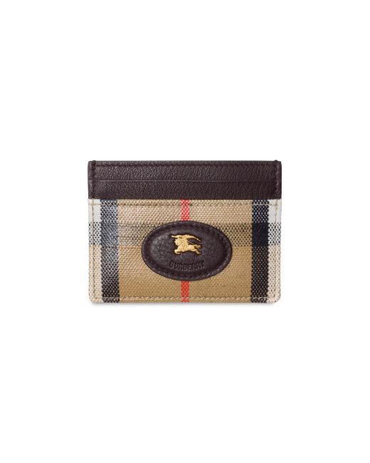 Burberry's Highlands card case is styled with the label's signature check and detailed with the Knight stamp, an archival motif first seen on Burberry bags in the 1980s. Exterior: four card slots Cotton/viscose/linen Lining: leather Combo: cotton/polyurethane Trim: leather Imported SIZE About 3.9"W x 3"H ABOUT THE BRAND Founded in 1856 by 21-year-old Thomas Burberry, the brand set out with a mission to stylishly protect against British weather-and Burberry's iconic trench coat was born. In the 1920s, its renowned check pattern was introduced as the coat's lining. Today, under Creative Director Daniel Lee, the heritage brand continues to evolve and create timelessly classic men's, women's and kids' pieces, along with beauty. Handbags - Burberry Handbags > Burberry > Saks Fifth Avenue > Barneys. Burberry. Color: Sand.