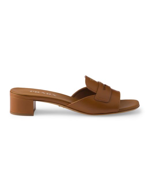 Screen-printed logo Leather sole with metal lettering logo Leather-covered heel, 35mm / 1.37'' Imported 100% Calf Leather. Lsd Rtw - Prada Rtw > Prada > Saks Fifth Avenue > Barneys. Prada. Color: Brown. Size: 6.