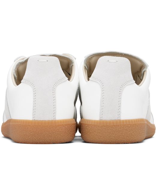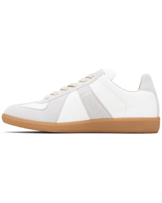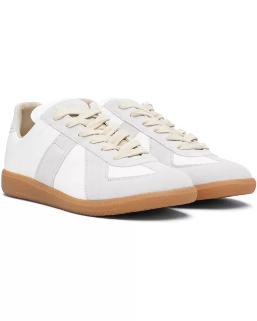 Low-top buffed nappa calfskin and calfskin suede sneakers. · Lace-up closure · Concealed elasticized gussets at vamp · Logo patch at padded tongue · Padded collar · White stitching at heel tab · Buffed calfskin and plain-woven lining · Textured rubber midsole · Treaded rubber sole Supplier color: Dirty white