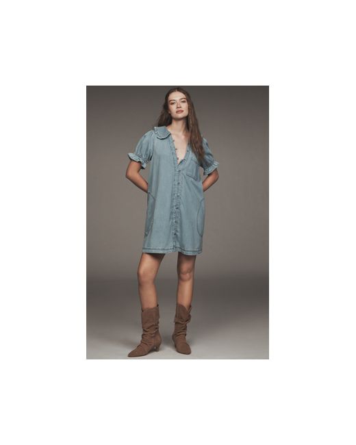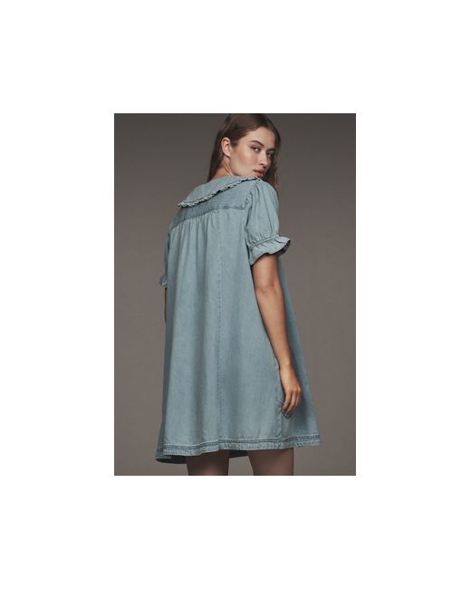 Our rave-reviewed Keira blouse is reimagined as a mini dress, with the same much loved features: Victorian-inspired styling, a Peter Pan collar, and subtly puffed sleeves trimmed with petite ruffles. The Keira Collared Button-Front Mini Dress by Pilcro in Blue, Women's Size: XS, Cotton at Anthropologie