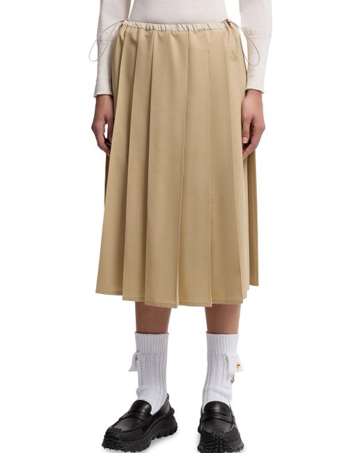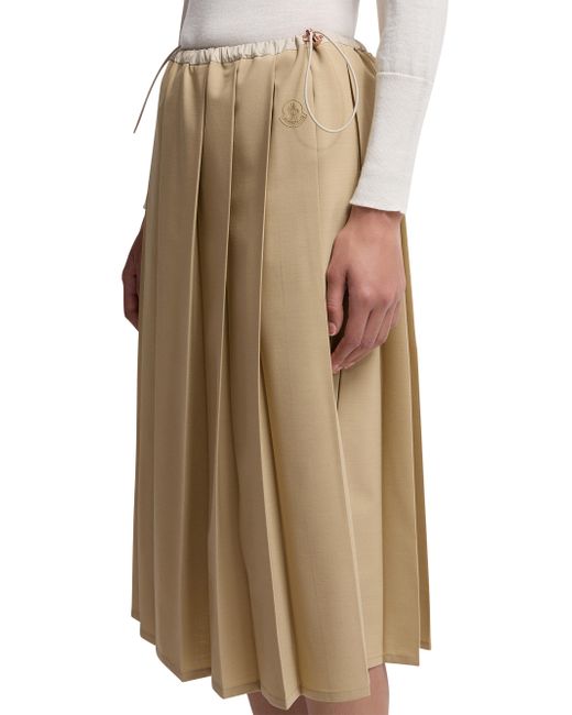 Elevating an everyday wardrobe, this skirt enhances femininity with its pleated design. Made from polyester Waistband with drawstring tie Pleated Base Fabric: 52% Polyester, 42% Wool, 6% Elastane / Spandex; 1 Material: 100% Polyester Hand wash; do not bleach; do not tumble dry; ironing maximum temperature 110c - without steam; do not dry clean; do not professionally wet clean; flat dry in the shade; wash separately; do not soak; do not iron pleated fabric; it is advisable to wash and iron the garment on reverse.; do not twist or wring; protect trims while washing Made in Italy ABOUT THE BRAND Named after the beautiful Alpine town of Monestier-de-Clermont near Grenoble, France, the luxury outerwear brand debuted in 1952 with quilted sleeping bags and down jackets created to protect the town's workers from the elements. Today, Moncler's insulated, high-performance gear is supplemented with après ski styles for women, men and kids, as well as shoes and winter accessories. Lsd Mens - Moncler > Moncler > Saks Fifth Avenue > Barneys. Moncler. Color: Beige. Size: 8.