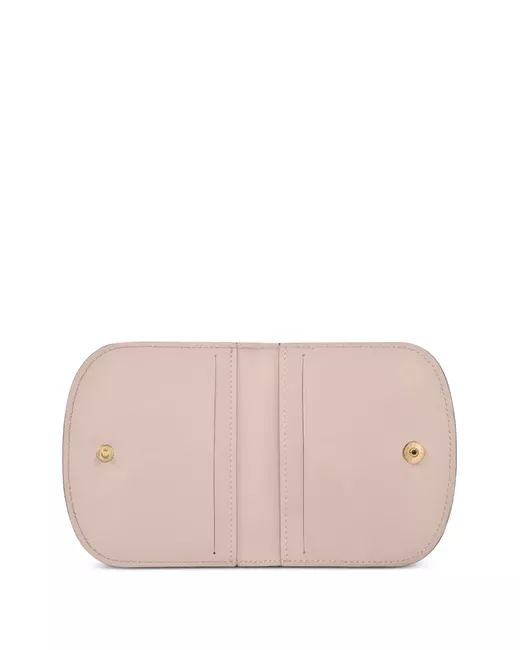 pale pink embossed logo detail smooth finish multiple card slots rounded shape