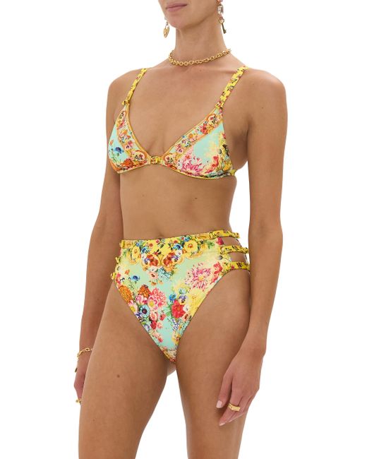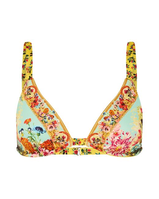 From the Aromatic Tiger Flower Collection. This swim bra from Camilla blooms with a vibrant floral print and an underwire for support. V-Neck Straps Back clasp closure 82% polyamide/18% elastane Hand wash Imported. Outerwear And Swimwear - Contemporary Swim > Camilla > Saks Fifth Avenue > Barneys. Camilla. Color: Aromatic Tiger Flower. Size: XS.