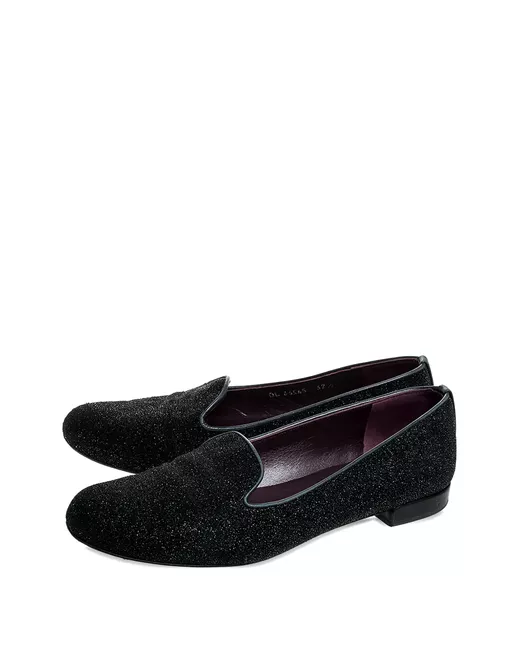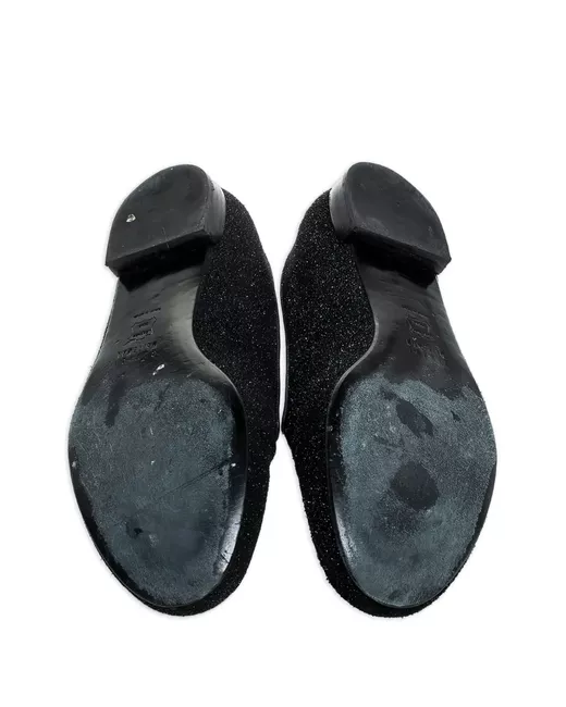 black glitter leather low heel slip-on design Condition: GOOD. This previously owned and used item is in good condition with minimal signs of use. This may include fading of material or plating and scratches.