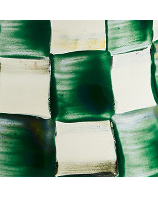 Bring Mackenzie-Childs' Emerald Check collection into your kitchen and watch the aesthetic transform. The glossy finish on the hand-painted steel adds instant appeal to any table set or mug collection, while the bronzed rim of the mug provides a rustic finish to the heavy-gauge steel.