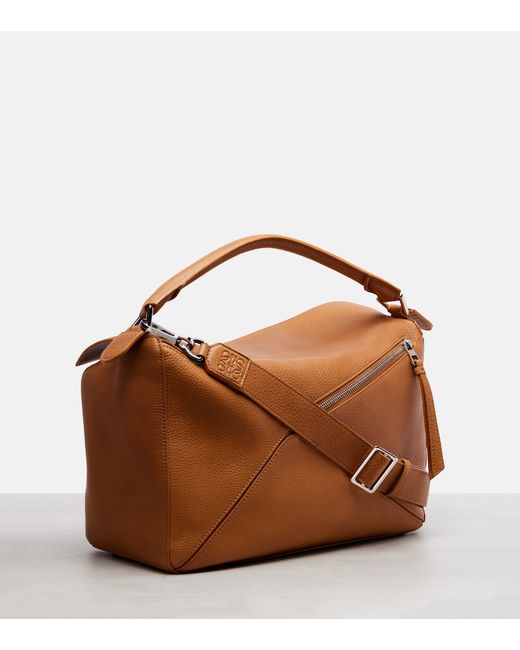 Material: leather. Lining: suede. Made in Spain. Designer color name: Light Canyon Brown. Item color: brown. Hardware color: silver. Zipped back pocket. Top handle, Detachable shoulder strap. Internal details: single compartment, internal slot pockets. Protective feet. Includes: dust bag. Leather.