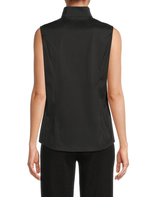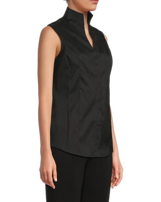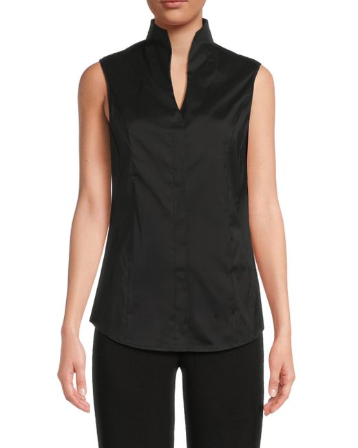 This Misook top is crafted of a stretch cotton blend. This sleeveless style is designed with a split stand collar and concealed button-front closure. Split neck Sleeveless Concealed button-front closure 71% cotton/26% nylon/3% spandex Machine wash Imported SIZE & FIT About 26.5" from shoulder to hem Model measurements: 5'10" tall Model is wearing US size Small. Modern Collections - Modern Coll > Misook > Saks Fifth Avenue > Barneys. Misook. Color: Black. Size: XS.