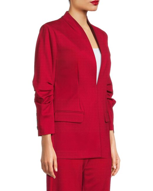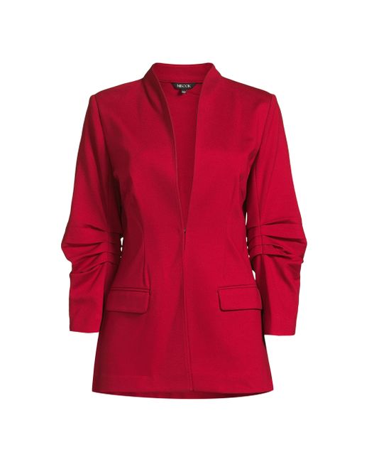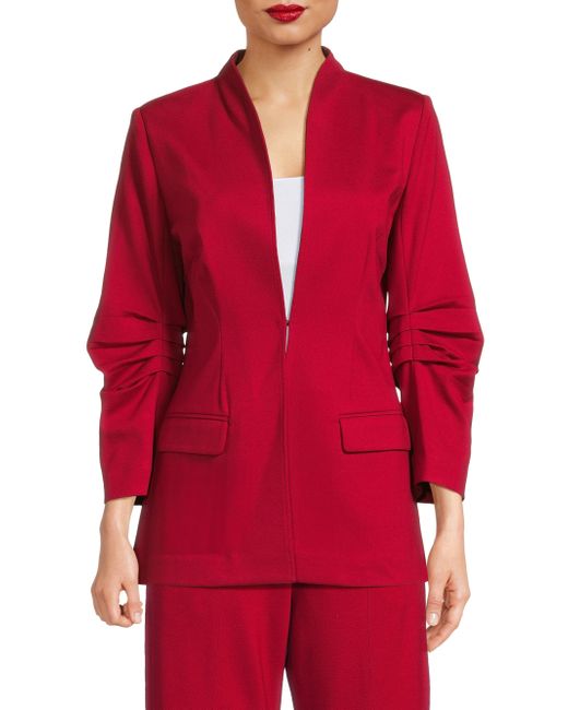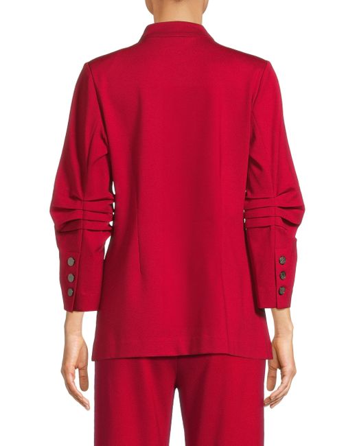 Misook's single-breasted jacket is tailored in a slim-fit silhouette featuring a stand collar and three-quarter sleeves. Stand collar Three-quarter sleeves Front hook-and-eye closure 53% nylon/40% rayon/7% spandex Machine wash Imported SIZE & FIT About 27" from shoulder to hem Model measurements: 5'10" tall Model is wearing a US size 4. Modern Collections - Modern Coll > Misook > Saks Fifth Avenue > Barneys. Misook. Color: Scarlet Red. Size: XS.