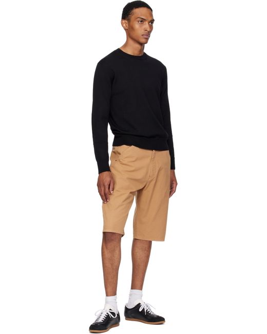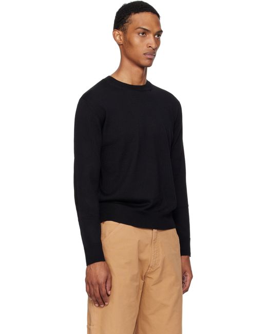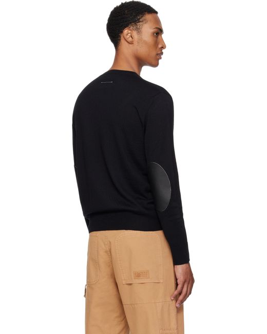 Knit virgin wool-blend sweater. · Rib-knit crewneck, hem, and cuffs · Buffed calfskin elbow patches · White stitching at back Supplier color: Black