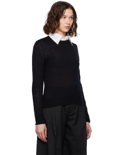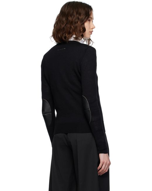 Knit virgin wool-blend sweater. · 12-gauge · Rib-knit crewneck, hem, and cuffs · Buffed calfskin elbow patches Supplier color: Black