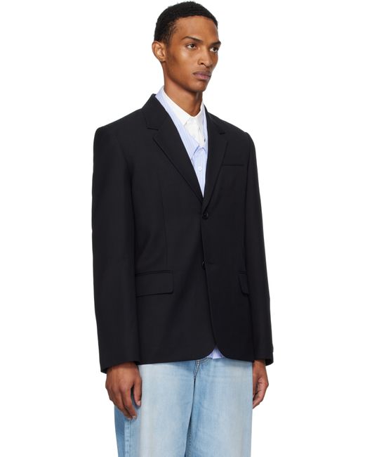 Polyester- and rayon-blend twill blazer. · Notched lapel · Button closure · Welt pocket at chest · Darts and flap pockets at front · Padded shoulders · Buttoned surgeon's cuffs · Logo patch at cuff · Central vent at back hem · Welt pockets at interior · Full cupro satin lining Supplier color: Black