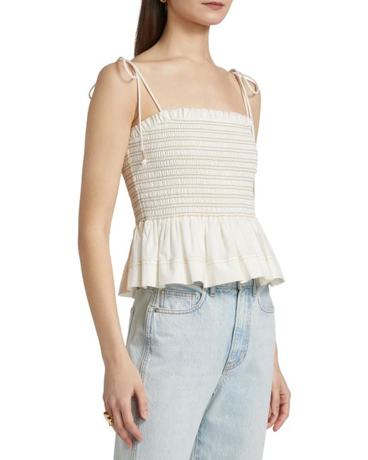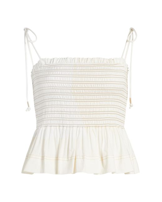 Crafted of lightweight cotton, Veronica Beard's Ophelia top elevates the boxy silhouette with a smocked bodice and frilled peplum hem. This romantic piece features self-tie straps that frame the straight neckline. Straightneck Self-tie straps Peplum hem Pulls over 100% cotton Dry clean Imported SIZE & FIT About 21" from shoulder to hem Model measurements: 5'10" tall Model is wearing a US size Small ABOUT THE BRAND Veronica Beard was founded by sisters-in-law Veronica Miele Beard and Veronica Swanson Beard in 2010. With a strong belief in enduring personal style, the co-designers focus on elevated everyday pieces, like their signature structured blazers and easy-chic dresses. Contemporary Sportswear - Veronica Beard > Veronica Beard > Saks Fifth Avenue > Barneys. Veronica Beard. Color: Dove. Size: XS.