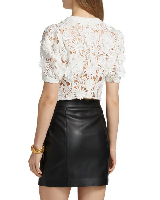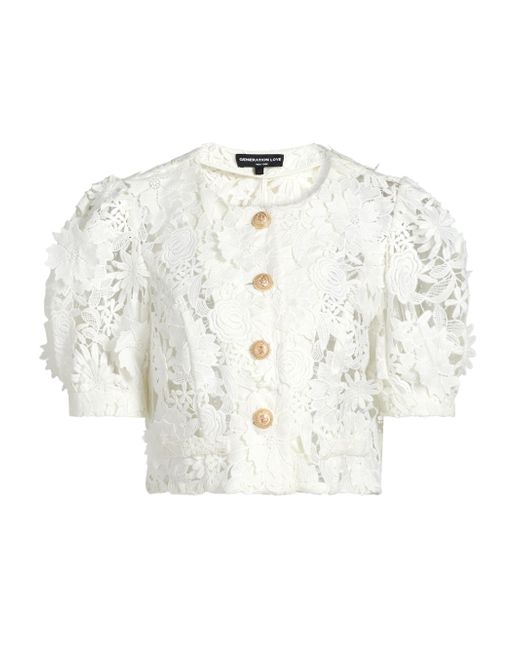Crafted of floral 3D Guipure lace, the Joanie jacket from Generation Love features a cropped design with puff sleeves and goldtone buttons. Round neck Short puff sleeves Mock welt pockets Button-front closure 100% polyester Dry clean Imported SIZE & FIT About 18.5" from shoulder to hem Model measurements: 5'10" tall Model is wearing a US size Small. Contemporary Sportswear - Casual Separates > Generation Love > Saks Fifth Avenue > Barneys. Generation Love. Color: White. Size: XS.