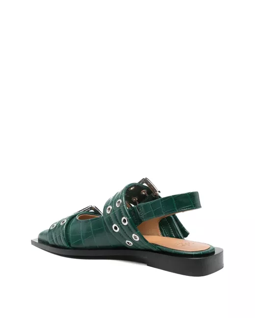 dark green crocodile-effect leather double buckle fastening pointed toe slingback strap