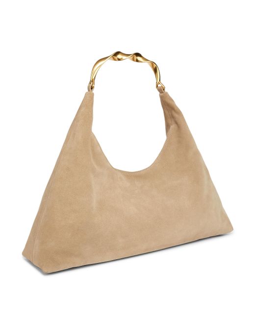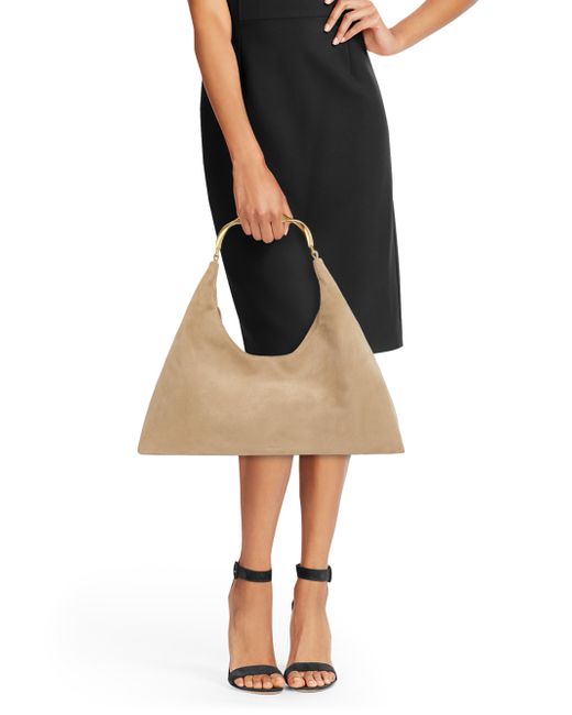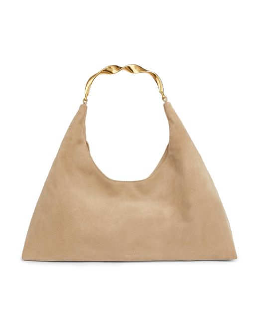 Crafted of suede, Simkhai's Nixi hobo bag features a spacious design with a twisted metal top handle. This accessory fastens with a top zip closure and features an interior zippered pocket. Top handle Interior: one zip pocket Top zip closure Suede Imported SIZE About 17"W x 14"H x 5"D Top handle: about 7.5" drop. Handbags - Collection Handbags > Simkhai > Saks Fifth Avenue > Barneys. SIMKHAI. Color: Desert.