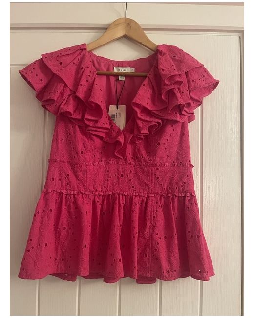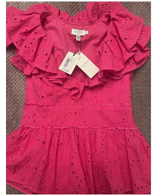 Add a touch of elegance to your wardrobe with this gorgeous Ted Baker Broderie top in a lovely shade of pink. The blouse features short sleeves and is made from high-quality cotton, ensuring comfort and durability. It has side zip fastening. It is perfect for any occasion, whether it's a casual day out or a formal event. The top is available in size 10/M and is ideal for women who love to make a fashion statement. The brand is known for its unique designs and attention to detail, making this blouse a must-have for any fashion-conscious woman. Order now and add a touch of luxury to your wardrobe!