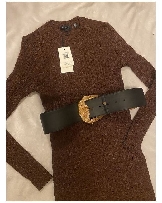 BNWTS RRP£150 Ted Baker Metallic Bodycon Long Sleeve Stretch Dress 4 UK 14 Belt not included Reduced from £60 for Christmas