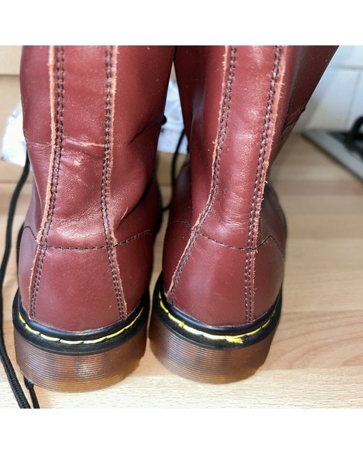 The product is a pair of Dr. Martens size 4 women's boots in a classic ankle shaft style with a round toe shape. Made from red leather with a rubber outsole, these stylish booties are perfect for casual occasions in the spring season. With a standard shoe width and the iconic Dr. Martens brand, these boots offer both comfort and a fashionable look for any outfit. I bought these for my daughter at Christmas, don’t think she has ever worn them.