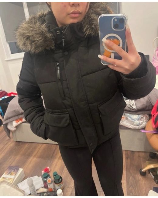 Stay warm and stylish this winter with this Superdry women's coat in size 12. Made from polyester with a polyester lining, it is perfect for casual occasions. The black colour and basic jacket style make it versatile for everyday wear. Easy to care for with its machine washable outer shell, this coat is a practical and fashionable choice for the colder months. I bought from Vinted for £80 but never ever wear it, still perfect condition however there are rips that were there previously that she seller did not disclose to me. It is not visible so i decided to keep.