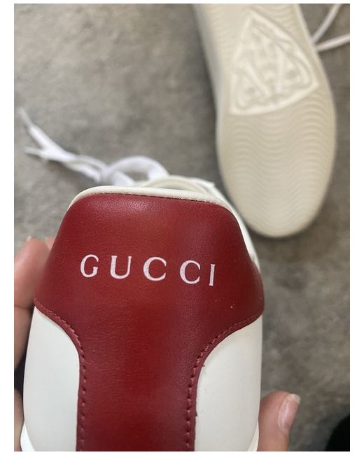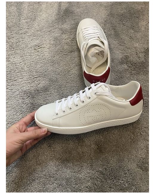 Gucci (WMNS) Gucci Ace 'Interlocking G - White Red' Size : Model number: 598527-AY070-9078 Genuine Gucci Trainers Beautiful white trainers with red backs and embossed Gucci writing I no longer have the box but ideal Christmas present £580 new, selling at reduced price Size - I am a 6 although they say 38.5 so will fit a 5.5 or 6