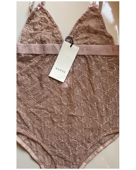 PRODUCT DESCRIPTION The Gucci bodysuit trend is here to stay - this strappy bodysuit featuring mesh logo has you covered if you want to swap tops for this chic body-hugging piece. For a night out team this with coated jeggings & strappy high heels. Brand New With Tags Adjustable straps Strappy bodysuit Snap button closure Mesh logo Regular Fit Size Large UK: 12-14 Colour: Pink 88% polyester 12% elastane lining 100% polyester