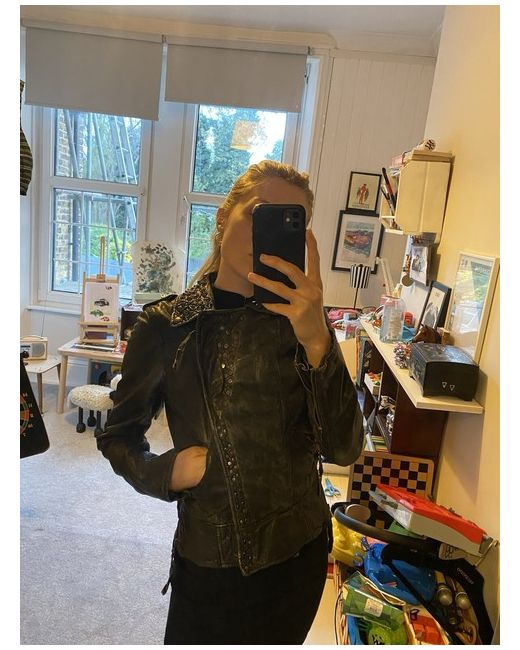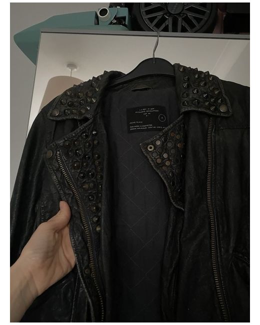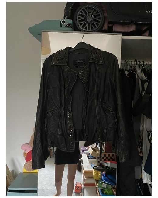 All Saint leather jacket Distressed leather Studs on front and patch on the back Size 8 Please choose shipping service that provide tracking number The jacket is new however the leather is distressed Will only post it with ups or dpd to EUrope . I am going to Send a photo of the receipt as a proof of purchase cost , if the shipping cost is less then I will pay back the difference