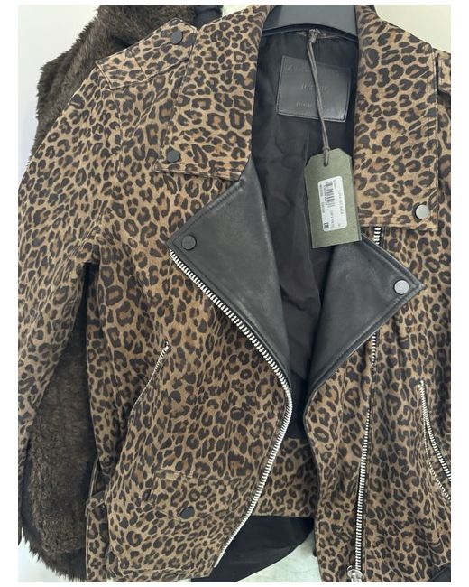 This stylish AllSaints jacket is a must-have for any fashion-forward woman. With a bold leopard print and made from high-quality leather, it's perfect for any season - whether you're braving the winter months or enjoying the summer sun. The jacket comes in a size medium and is designed in a motorbike style, making it a trendy addition to any wardrobe. The brown colour is versatile and can be paired with a range of outfits. Don't miss out on this stunning jacket that will make you stand out from the crowd.