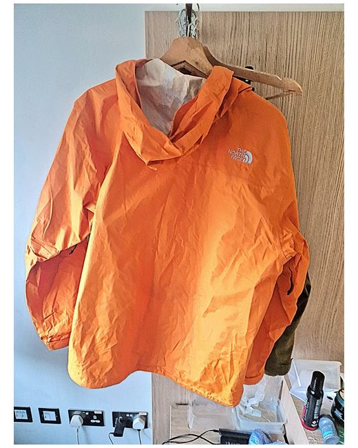 Get ready for the wind with this stylish orange jacket from The North Face. Perfect for men who are always on the go, this anorak/windbreaker style jacket is made of durable polyester material that ensures you stay comfortable in any weather. The jacket is available in size L and is suitable for regular size types. The vibrant orange colour of the jacket is sure to turn heads and make you stand out in a crowd. Whether you're going for a hike or just running errands around town, this jacket is the perfect addition to your wardrobe. Don't miss out on the chance to own this stylish and practical piece of clothing.