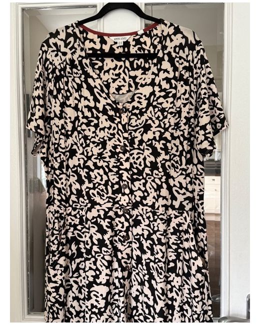 Beautiful black & cream coloured round neck patterned & striped button through dress with pockets from White Stuff! Black & cream coloured pattern with a contrasting stripe design around the hem - see photo’s!