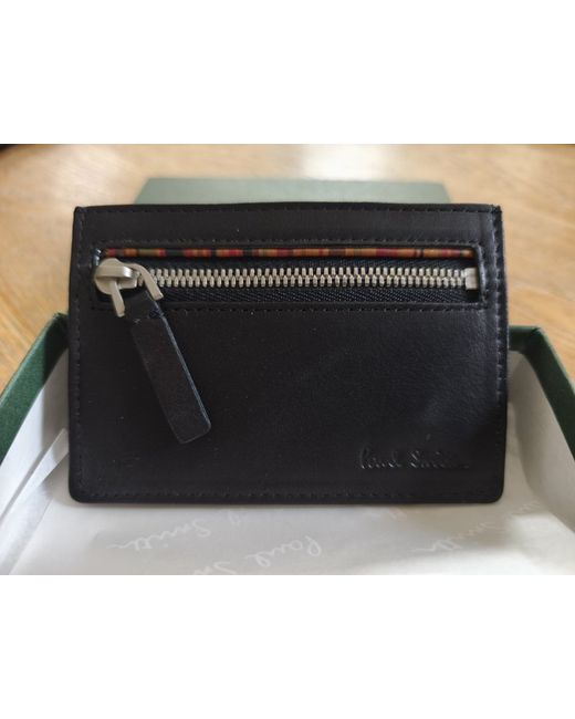 The Paul Smith Thin Small Purse/Wallet in black leather is a stylish accessory suitable for both men and women. With a zip, this wallet is compact and convenient for keeping your essentials organized. Made with high-quality leather, it exudes a sleek and sophisticated look, perfect for adding a touch of luxury to your everyday style. Whether you're going for a minimalist aesthetic or simply need a practical way to carry your cards and coins, this Paul Smith wallet is a versatile choice for the modern individual.