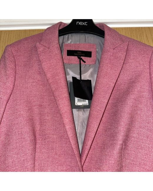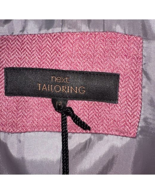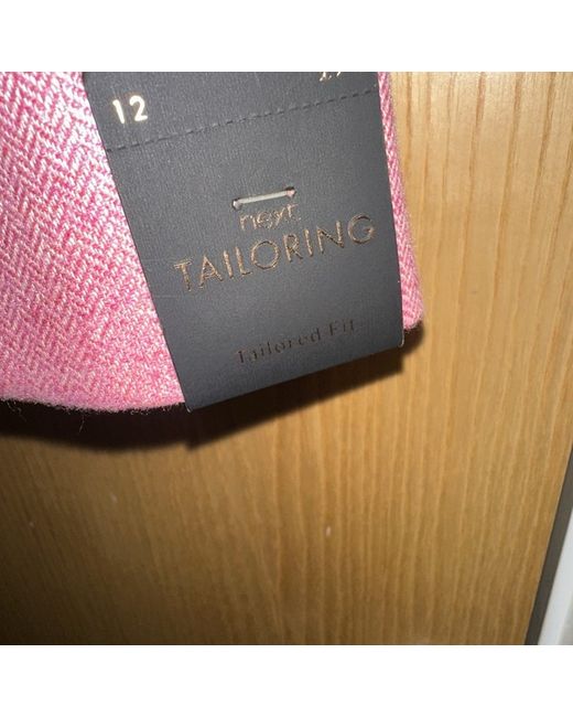The BNWT Womens Next Pink Wool Blend Tailored Blazer in size 12 is a stylish and sophisticated addition to any woman's wardrobe. Made from a high-quality wool blend, this blazer features a tailored fit for a sharp and polished look. The vibrant pink colour adds a fun and feminine touch, making it perfect for both professional and casual occasions. With its elegant design and quality construction from the brand Next, this blazer is sure to become a versatile staple in your wardrobe.