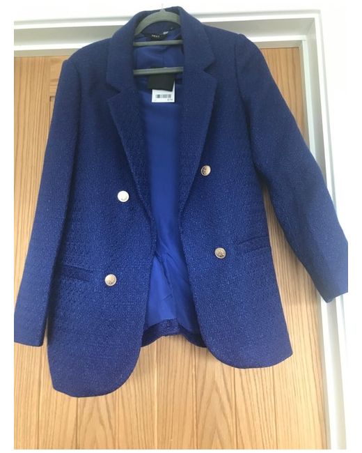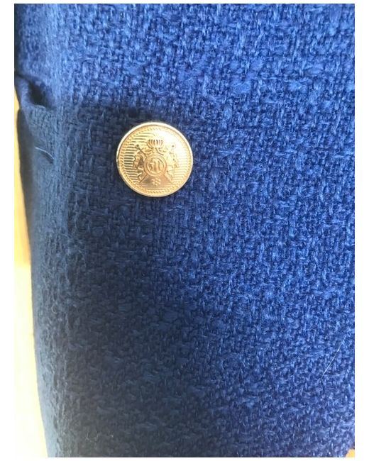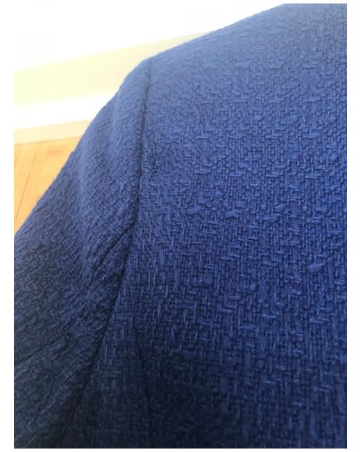 The back slit is still sewn up so needs to be snipped to lie properly. Beautiful bright blue jacket with 4 gold coloured buttons for decoration only no button holes and 2 faux pockets (extra buttons attached).