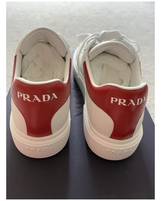 The Prada women's classic trainers in size 38 are a timeless and stylish sneaker designed for casual occasions during the summer season. Featuring a low top design with a lace-up closure, these trainers are crafted from white leather with a rubber outsole for durability. The leather lining and insole provide comfort and quality, making these trainers a versatile and chic choice for any woman's wardrobe. With the signature Prada brand, these sneakers combine fashion and function for a classic and sophisticated look.