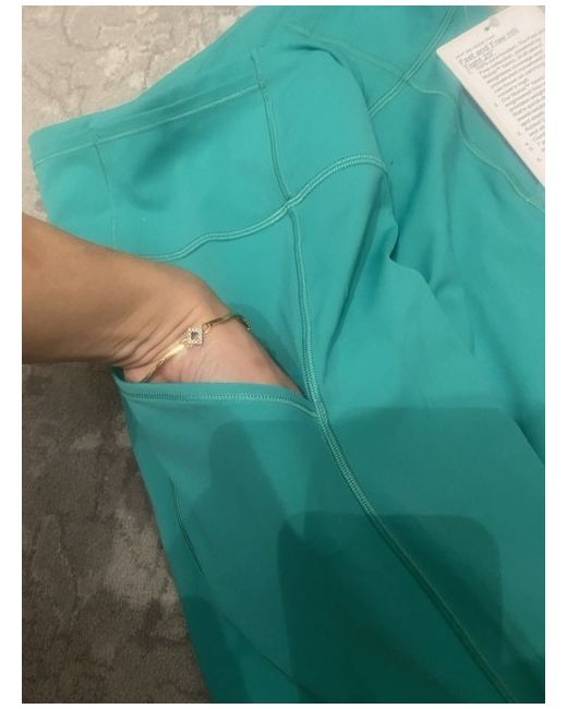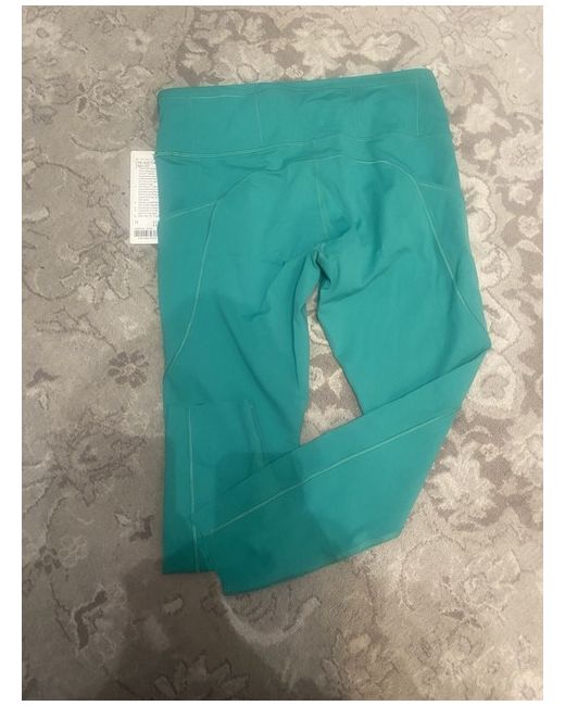 Unveil your workout wardrobe staple with these Lululemon leggings, designed for women who seek both style and functionality. The capri cut ensures a comfortable fit for all your movements, making them ideal for a variety of activities. Their rich green hue adds a pop of colour to your activewear ensemble. Crafted for the active individual, these leggings boast a snug compression fit that supports your legs, enhancing your performance whether you're hitting the gym or going for a run. The leggings are a size Large, with a brand name that's synonymous with quality and comfort. Embrace the fusion of fashion and fitness with these versatile Lululemon leggings.
