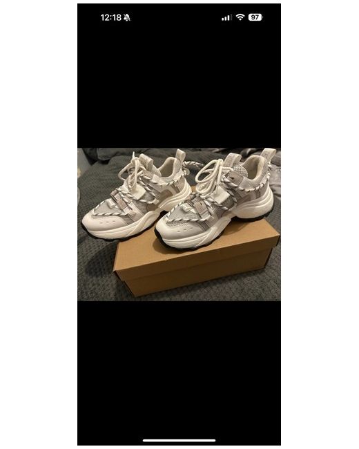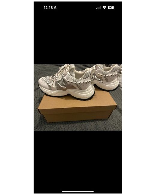 The Steve Madden Tazmania Trainers are a stylish and trendy pair of sneakers designed for women. With a UK size of 6 and a matching US size, these white trainers are perfect for those looking for a fashionable and comfortable footwear option. Made by the popular brand Steve Madden, these trainers are a must-have for any woman's shoe collection.